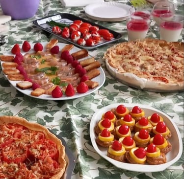 Une fois par mois, nous choisissons un thème: terrines et verrines, légumes de printemps, pâte feuilletée, miel, champignons, cucurbitacées etc... selon l'inspiration et les saisons.