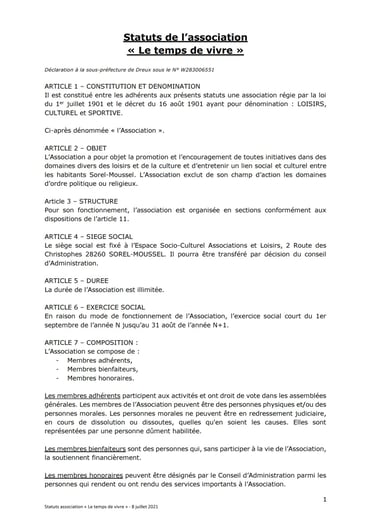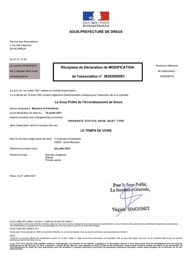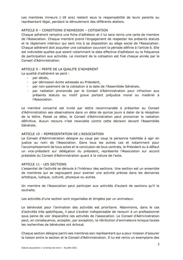 Statuts du Temps de Vivre